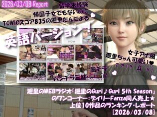3DCG d_743587【無料フル漫画えろ】【▲20】英語★廻里の自撮りWEBラジオ『廻里のGuriGuri(グリグリ)5thシーズン』のワンコーナー:デイリーFanza同人売上★上位10作品のランキング・レポート[2026/03/08]//一ノ瀬廻里//
